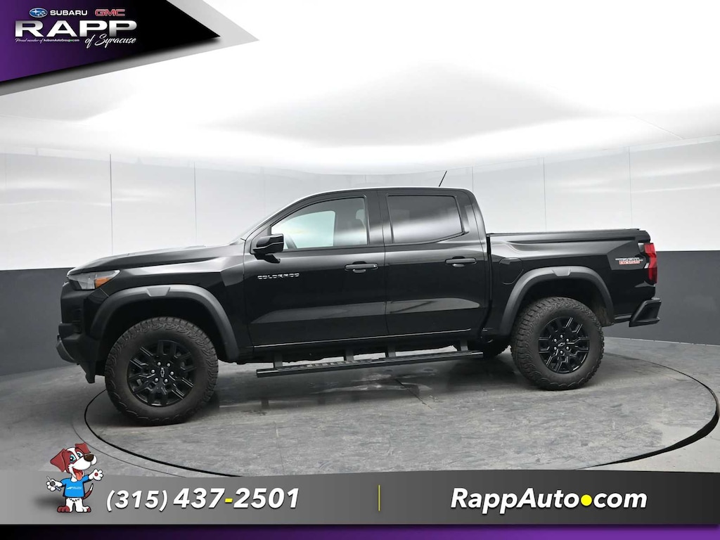 4x4, Back-Up Camera, Satellite Radio, iPod/MP3 Input, Onboard Communications System, Trailer Hitch, Aluminum Wheels, Keyless Start, Dual Zone A/C, WiFi Hotspot MP3 Player, Privacy Glass, Keyless Entry, Steering Wheel Controls. Chevrolet 4WD Trail Boss with Black exterior and Jet Black interior features a 4 Cylinder Engine with 310 HP at 5600 RPM*.