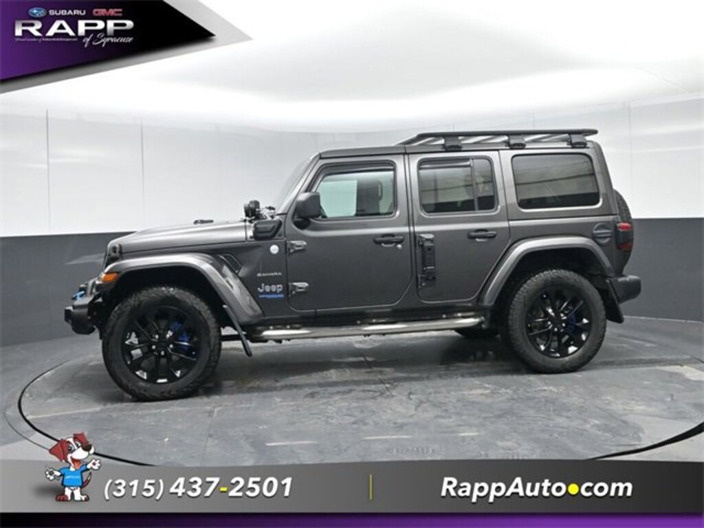 Non-Smoker, Recent Oil Change, Dealer Detailed, Dealer Inspected, Backup Camera, Bluetooth, Hands-free, Cruise Control, Heated Seats, Leather Seats, Power Locks, Power Windows, Trailer Hitch, AWD / 4WD, View our entire inventory at https://www.billrappbuickgmc.com/, Wrangler Unlimited Sahara 4xe, 2.0L I4 DOHC, 4WD, Black Leather, 9 Speakers, ABS, Alloy wheels, Cold Weather Group, Compass, Front Dual-Zone Automatic Climate Control, Heated Front Bucket Seats, Heated Power Door Mirrors, Heated Steering Wheel, Illuminated entry, Low tire pressure warning, Navigation System, ParkView Rear Back-Up Camera, Passenger door bin, Remote Engine Starter, Remote keyless entry, Traction control, Traction/Stability Control. Granite Crystal Metallic Clearcoat 2021 Jeep Wrangler Unlimited Sahara 4xe 4WD 8-Speed Automatic 2.0L I4 DOHC
